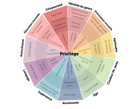 L’intersectionnalité, concept développé par Kimberlé Williams Crenshaw (Crenshaw, 1989, 2017), permet de constater que les iniquités sociales ne sont pas le résultat d’un seul facteur. Les iniquités sont plutôt générées par le croisement de différents enjeux, comme la classe sociale, la situation économique, la culture, l’orientation sexuelle, la race ou la religion, et ces croisements font en sorte que certaines personnes subissent plus d’une forme de discrimination. Par exemple, un élève peut être un nouvel arrivant qui fait aussi partie de la communauté LGBTQIA2S+, donc qui appartient à deux minorités dans son école francophone en milieu minoritaire. S’il y a un comité s’intéressant à la cause LGBTQIA2S+ à l’école, il se peut qu’il soit toujours marginalisé dans ce comité à cause de son ethnicité, tout comme il se peut que le comité culturel ne réponde pas non plus à ses besoins en raison de son orientation sexuelle. L’intersectionnalité invite à regarder de façon holistique la situation de vie d’une personne afin de mieux comprendre ses expériences, au lieu de la catégoriser dans des boîtes précises où elle ne se reconnaît pas vraiment.